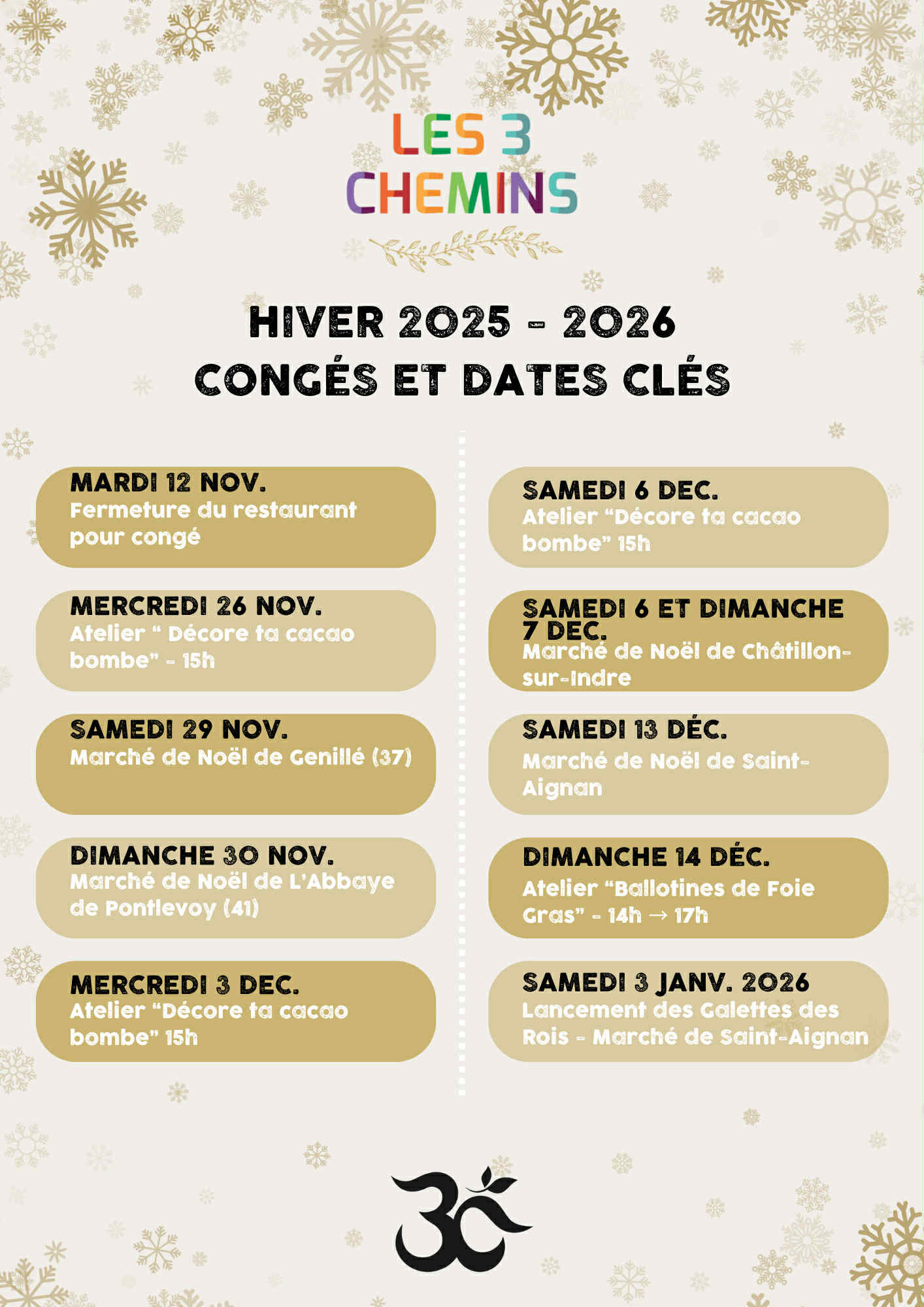 À l’origine de cette aventure, Thessa Van Wijngaarden, cheffe autodidacte, a crée les prémices de ce qui est aujourd’hui Les 3 Chemins, en 2016, aux côtés de sa maman Nathalie, naturopathe passionnée par la santé et le bien-être par l’alimentation. Ensemble, elles ont construit un lieu unique où chaque plat reflète une quête d’équilibre entre gourmandise, authenticité et respect de la nature.